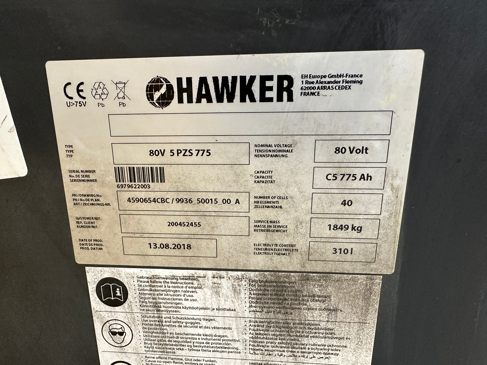- Batterie: Hawker 80V 5 PzS 775 Ah (08/2018)
